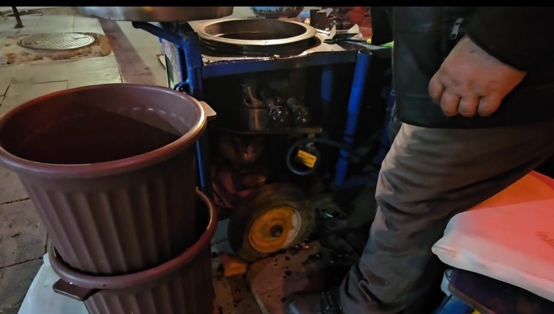 Elazığ’da kestane satan Yahya Kılıç, soğukta üşümemesi için sokak kedisini tüplü kestane kazanının yanında misafir ediyor.