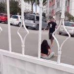 Sokak ortasında karısını dövdü, okuldaki çocuklar izledi