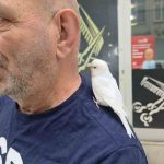 Sokaklarda omzundaki kuşuyla geziyor