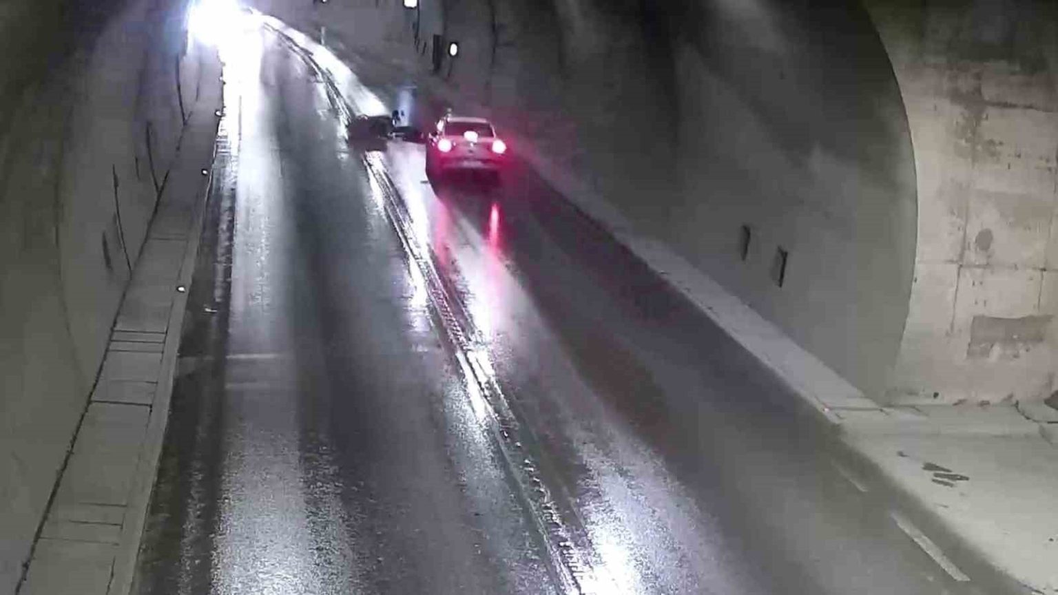 Aynı tünelde araçların sıralandığı esnada sürücüsünün takip mesafesine dikkat etmediği bir otomobilin önünde duran araca çarptığı anlar da kamera tarafından görüntülendi.