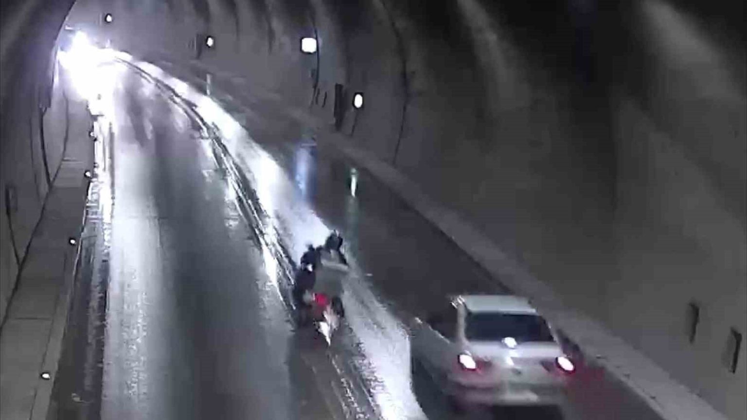 Amasya’da motosiklet sürücüsü tünelde sollamaya çalıştığı otomobilin önüne düştü. Motosikletlinin, ezilmekten son anda kurtulduğu o anlar kameraya yansıdı.