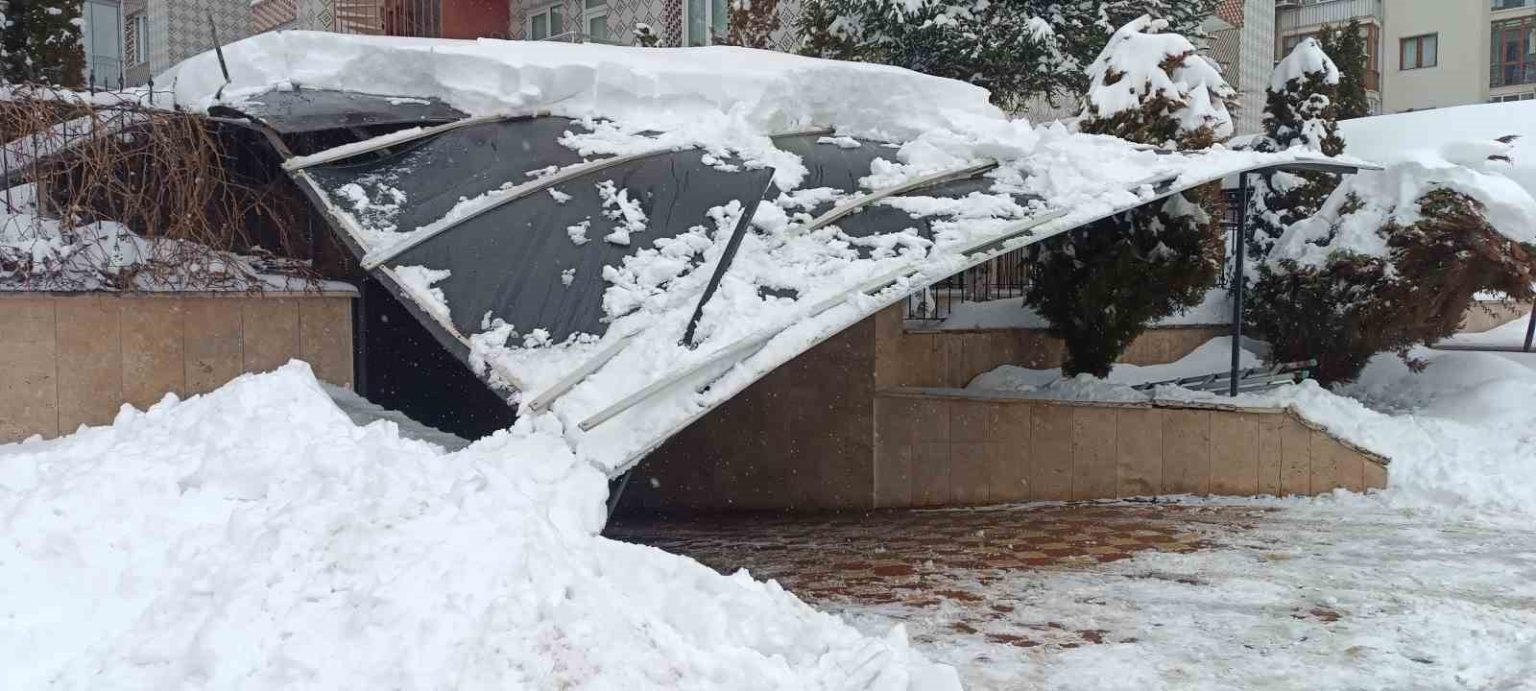 Sivas’ta bir işyeri ile otopark girişinin sundurması yağan karın ağrılığına dayanamazken bir kar temizleme aracı ise devrildi. Olaylarda maddi hasar oluştu.