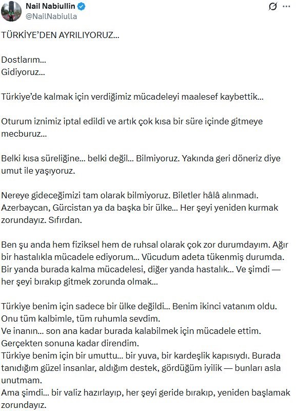 Sosyal medyada kendisini Tatar gazeteci ve aktivist olarak tanıtan Nail Nabiullin, Türkiye’de ikamet izninin iptal edildiğini iddia ederek takipçilerinden maddi destek talep ettiği öğrenildi. Yapılan incelemede iddiaların gerçek olmadığı, kendisinin ve ailesinin ikamet izinlerinin geçerli olduğu açıklandı.