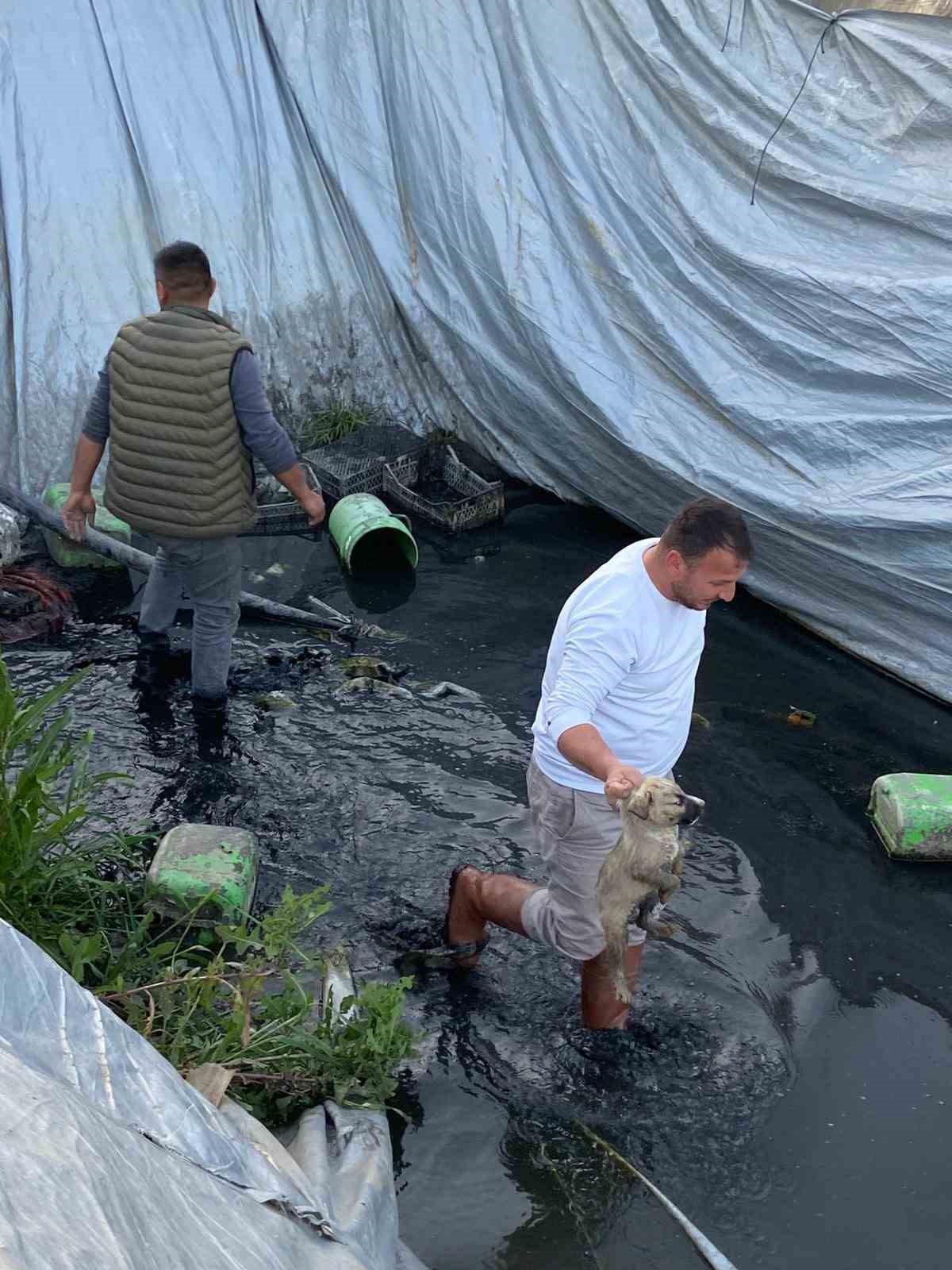 Aydın’ın Sultanhisar ilçesinde çilek sulama havuzuna düşen 5 yavru köpek, belediye ekiplerinin zamanında müdahalesiyle kurtarıldı.