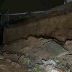 Çöken duvar havadan görüntülenirken, ekipler tarafından olaya ilişkin inceleme başlatıldı.