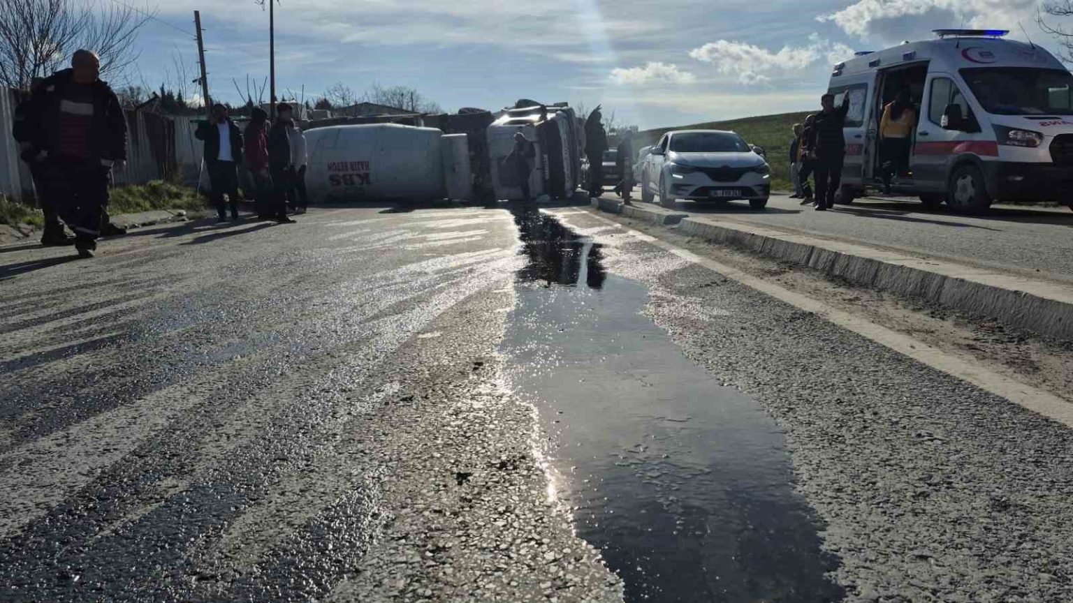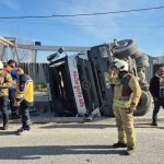 Kaza nedeniyle yol çift şeritli olarak trafiğe kapatılırken, yola dökülen akaryakıt sebebiyle bölgede güvenlik önlemleri alındı. Polis ekipleri olayla ilgili inceleme başlattı.