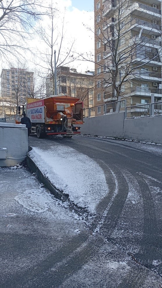 Sultangazi Belediyesi, kar yağışında vatandaşların mağduriyet yaşamaması için tüm önlemleri aldı. Karla mücadele çalışmaları kapsamında belediye ekipleri sahada teyakkuza geçti. İlçedeki 15 mahallede iki vardiya olmak üzere toplam 220 personel, 7/24 sahada hazır bekliyor. Karla mücadele kapsamında 21 kazıyıcı yükleyici, 7 kar küreme aracı, 2 kar küreme aparatlı araç, 1 greyder, 1 ekskavatör, 1 komatsu, 18 tuzlama kamyonu ve kamyonet olmak üzere toplam 51 iş makinesi çalışmalara katılıyor. 2 bin 500 tuz çuvalı, Sultangazi Belediyesi ekipleri tarafından kar yağışı sonrası kullanılması için kamu kurumları, hastaneler, siteler, camiler ve iş yerlerine dağıtıldı. Ayrıca trafik ve yaya sirkülasyonunun yoğun olduğu noktalarda kullanılmak üzere 3000 ton tuz hazırda bulunduruluyor.