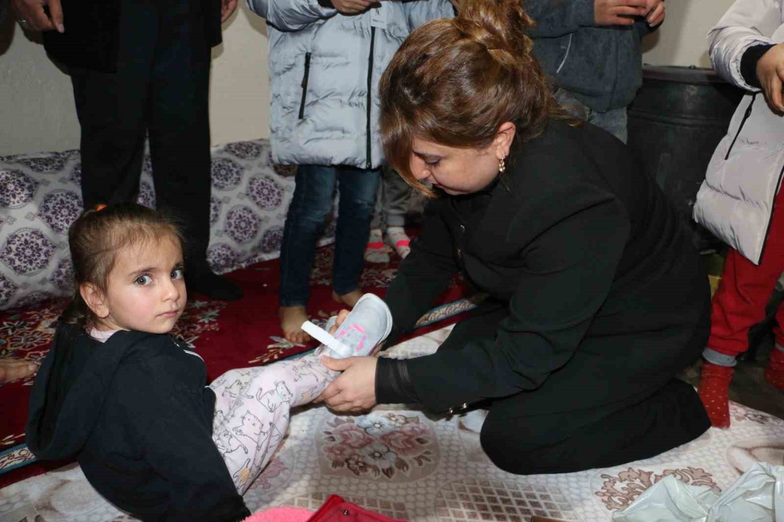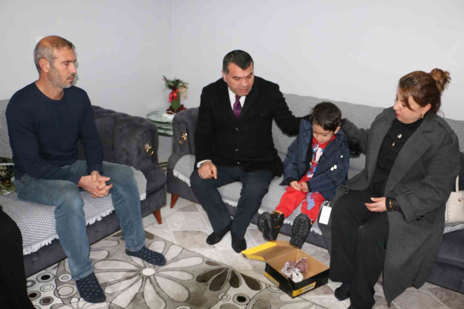 Çocuklardan Fatma Nur Benekli, “Bizlere mont ve ayakkabı hediye ettiği için Devlet dedeye çok teşekkür ederim” şeklinde konuştu.