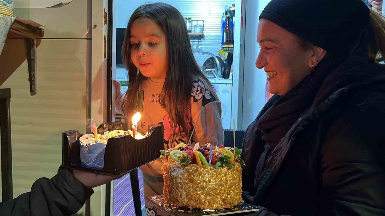 Hatay’da annesi ve kardeşleriyle konteynerde yaşayan Alya Parlak’ın 4’üncü yaş günü sürpriz doğum günüyle kutlandı. Doğum günü pastasındaki mumları üflediği esnada ’oyuncak mutfak eşyası’ dileğinde bulunan Alya yürekleri ısıttı.