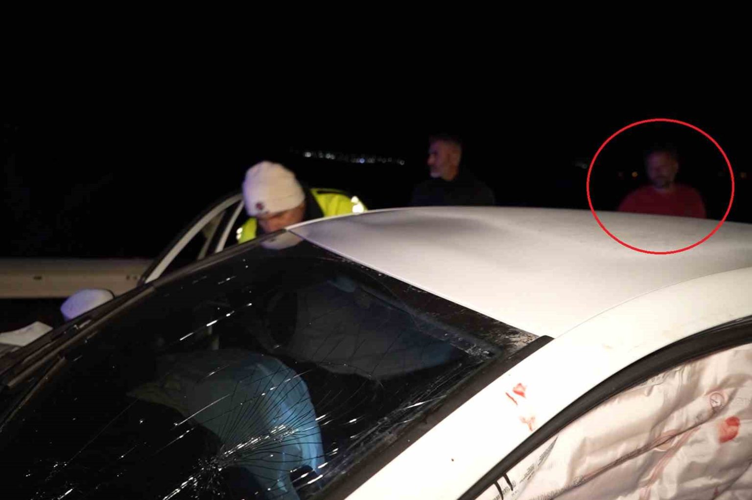 Kazalı otomobilde bulunan bir yolcu, sürücünün kendisi olduğunu iddia etti. Ancak trafik polisi araç içinde yaptığı incelemede kan izlerine rastladı. Sürücü olduğunu öne süren şahsın vücudunda yara izi olmaması trafik polisini şüphelendirdi. Hastaneye gitmeyi reddetmesi de dikkat çekti. Bunun üzerine ekipler, kazayı yapan sürücünün olay yerinden kaçtığına ilişkin tutanak tuttu. İşlemlerin ardından araç çekiciyle otoparka kaldırıldı.