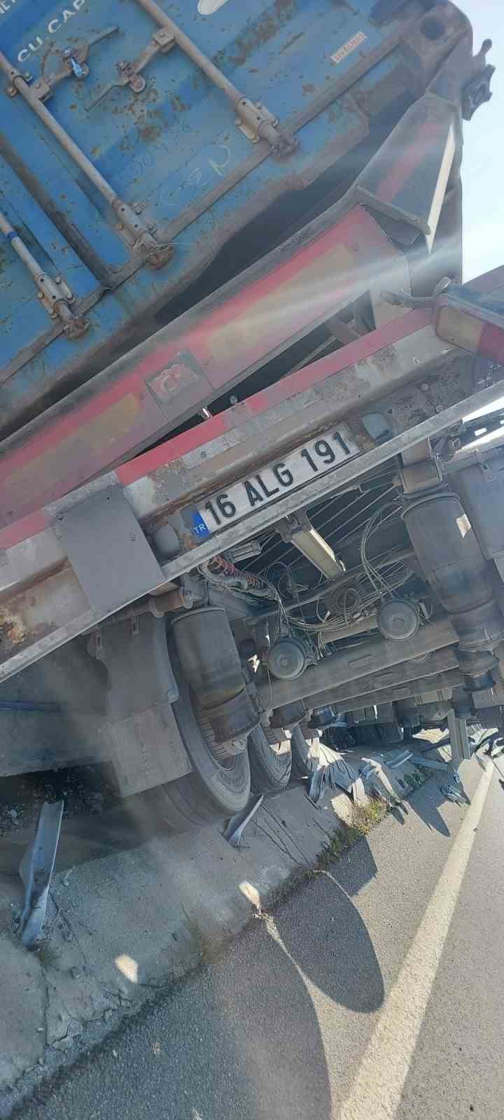 Edinilen bilgilere göre, sürücü V.A.’nın direksiyon hakimiyetini kaybetmesi sonucu İstanbul-İzmir Otoyolu İzmir istikameti Susurluk ilçesi Yahyaköy mevkinde 16 BFZ 459 plakalı çekici ve 16 ALG 191 plakalı dorsenin karıştığı tek taraflı trafik kazası meydana geldi. Kazada sürücü V.A. araç içerisinde sıkıştı.