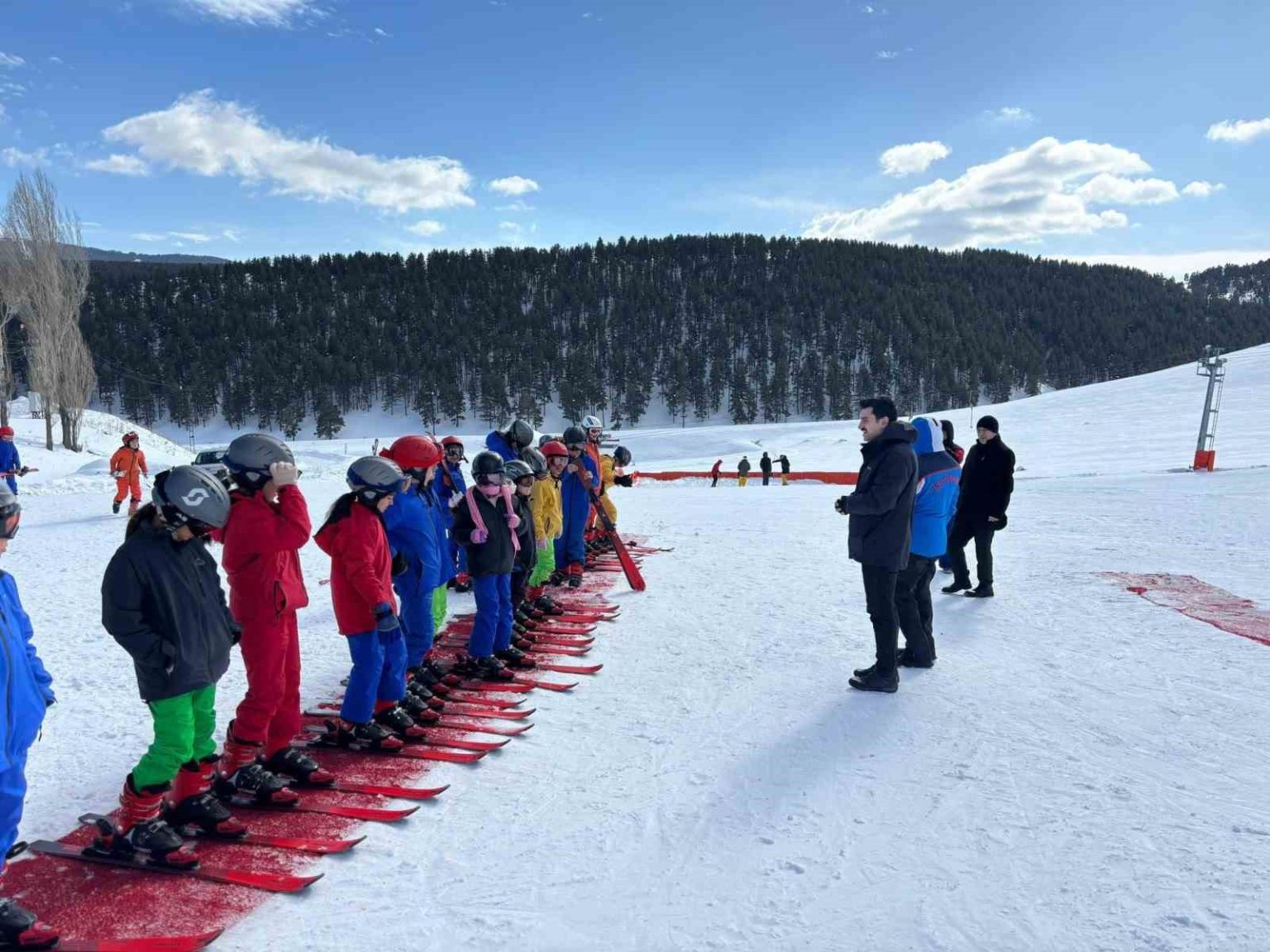Piste temel kayak eğitimi alan öğrencileri izleyen Kaymakam Tutal, eğitimcilerden teknik süreç hakkında bilgi aldı. Kayak takımlarını giyen öğrencilerin azmi ve mutluluğu gözlerinden okunurken, Tutal’ın öğrencilerle şakalaşması ve onlara moral vermesi ise dikkat çekti.