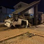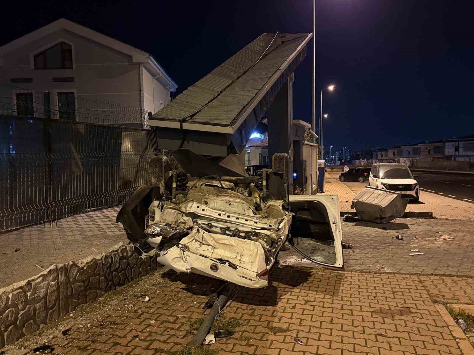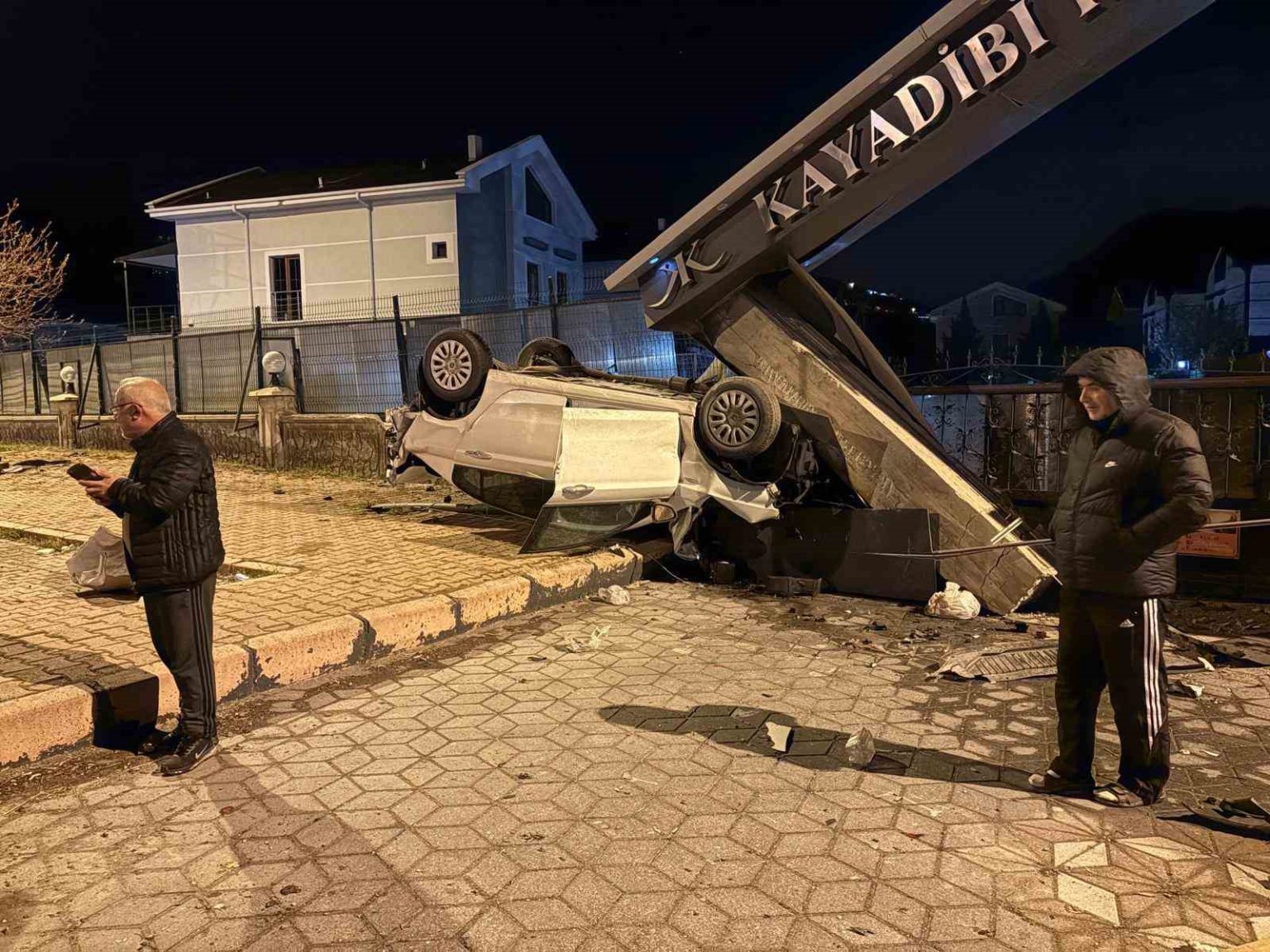 Takla atan otomobil sitenin girişini yıktı: 1 yaralı