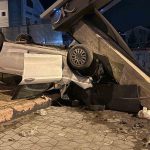 Kayseri’nin Melikgazi ilçesinde kontrolden çıkan otomobil takla atarak bir sitenin girişine daldı. Kazada sitenin duvarı ve girişindeki beton blok zarar görürken, sürücü yaralandı.