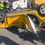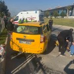 Taksi bariyerlere çarpıp takla attı: 2 yaralı