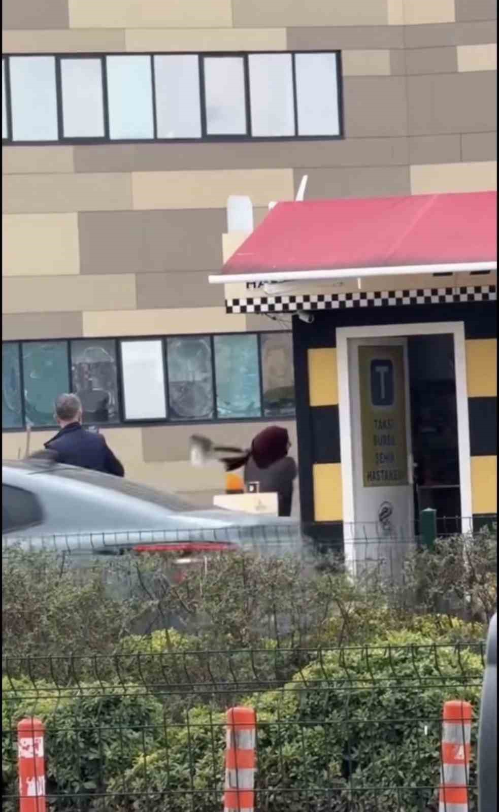 Bursa Şehir Hastanesi taksi durağında içinde yolcu dolu taksiye alınmadığı gerekçesiyle sinir krizi geçiren sağlıkçı bir kadın, camlar ve elektronik ekipmanlara zarar verdi. Olayda yaklaşık 150 bin liralık maddi hasar oluştu. O anlar kameraya yansırken, kadını görenler şaşkınlık yaşadı.