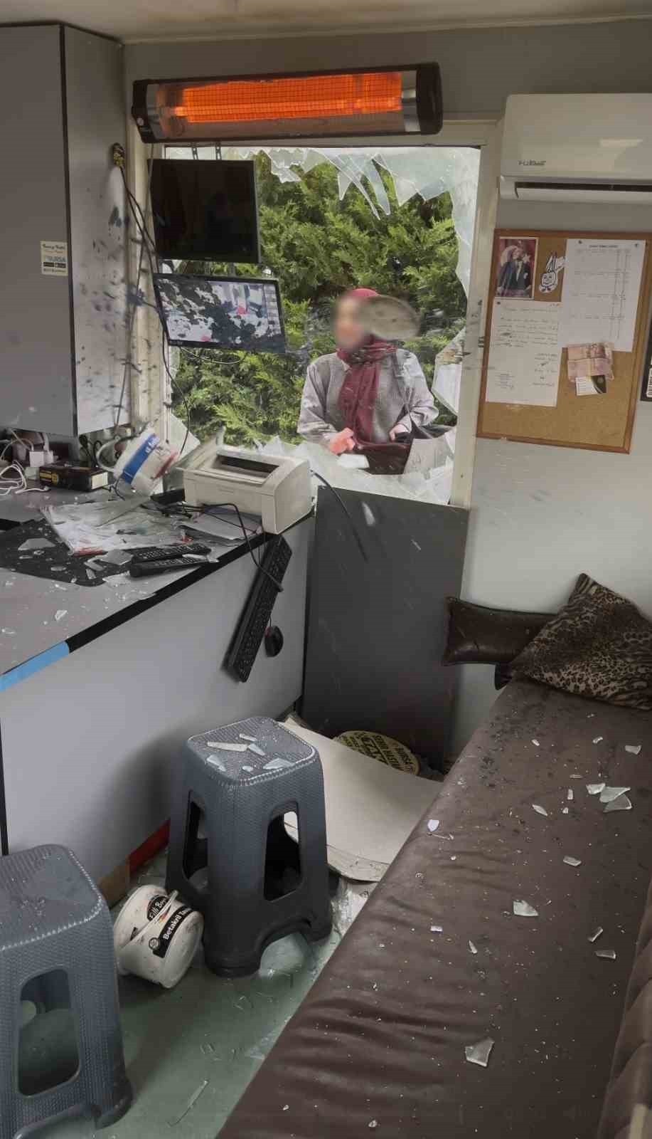 “Dün saat 4 civarında durağımıza iki yolcu geldi. Erkek yolcu önce geldiği için araca alındı. Kadın yolcuya ise ikinci aracın bir dakika içinde geleceğini söyledik. Buna rağmen ‘Beni neden almıyorsunuz, beni beğenmiyorsunuz’ diyerek tepki gösterdi. ‘Taksi beni sevmiyor’ diyerek bir anda saldırıya geçti. Sakinleştirmeye çalıştık ama dinlemedi. Kadın olduğu için müdahale etmedik ancak durağımızı harabeye çevirdi. Camlarımız kırıldı, bilgisayarlarımız parçalandı, boya kovalarını içeri attı. Çok mağdur olduk.”