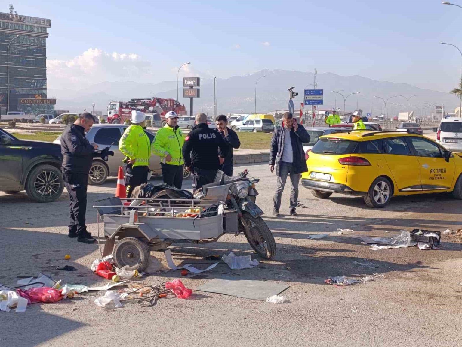 Kahramanmaraş’ın Onikişubat ilçesinde ticari taksi ile sepetli motosikletin karıştığı kazada 2 kişi yaralandı.