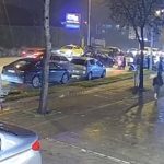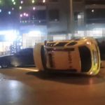 Taksi park halindeki otomobile çarpıp yan yattı… O anlar kamerada