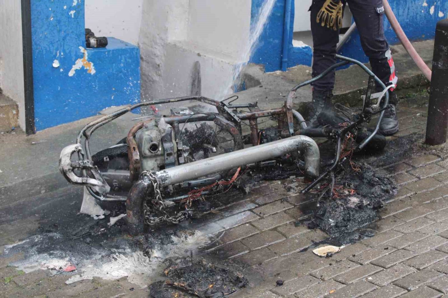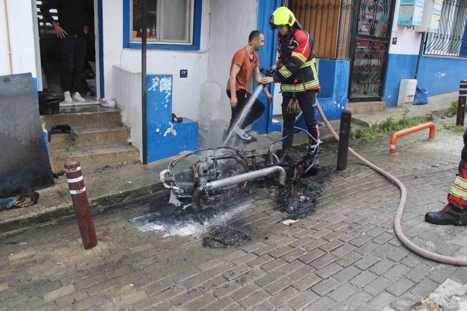 Aydın’ın Efeler ilçesinde tamirat sırasında bir anda tutuşan elektrikli motosiklet küle döndü.