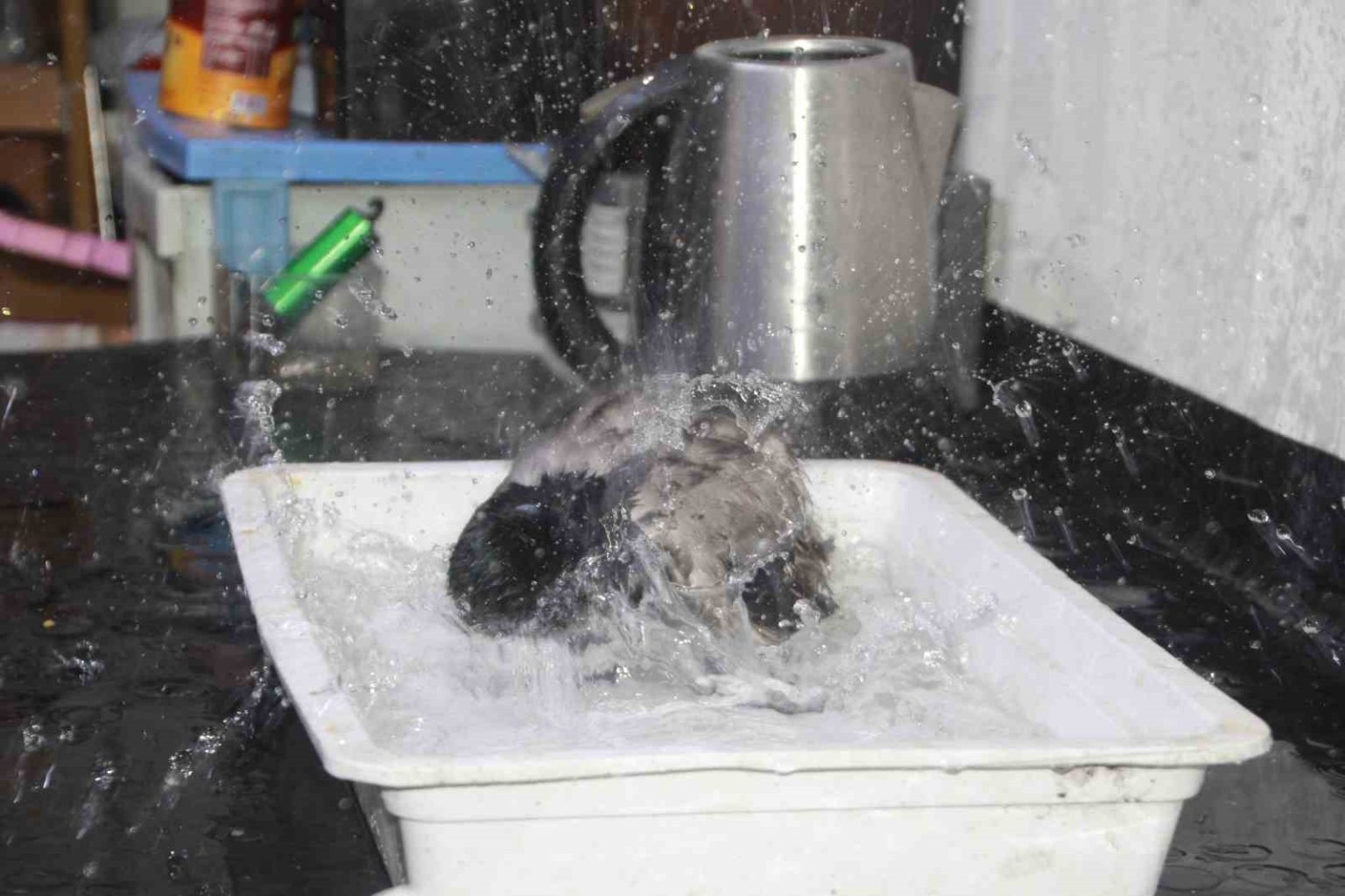 Karganın, kimi zaman kendisine çıraklık yaptığını kaydeden Hekim, “Bazen bana çıraklık da yapıyor, o zamanlarda beni uğraştırıyor, vidalarımızı kaybediyor. Her gün banyosunu yapıyor, suyu çok seviyor. Banyo yapmadığı zaman benden resmen banyo yaptırmamı istiyor. İnsanların tepkisi güzel, görenler şaşırıyorlar” şeklinde konuştu.
