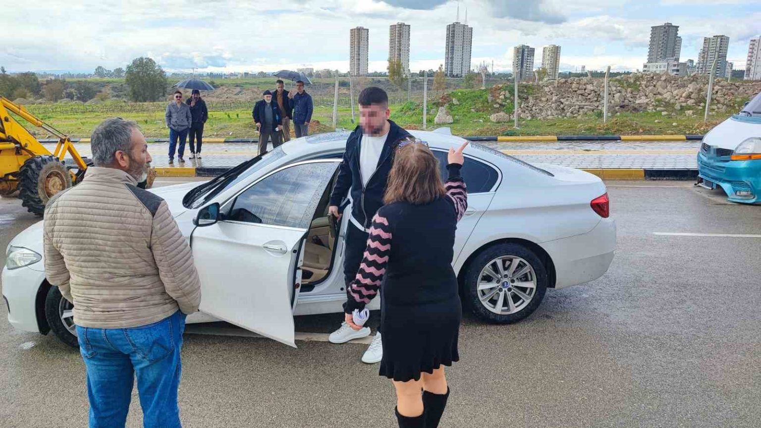 Yol ortasında duran hissedarlardan Fadime Köseler, belediyenin tapulu arazilerine yol yaptığını öne sürerek araçların geçişine izin vermedi. Bu sırada otomobiliyle gelen bir genç, yolun neden kapalı olduğunu sordu. Yolun açılmayacağı cevabını alan genç aracının arka koltuğundan çıkardığı tabancayı göstererek yolun açılmasını istedi. Bunun üzerine korkan iş makinası operatörü yolu açtı. Sürücünün geçmesinin ardından hissedarlar yolu yeniden kapattı.