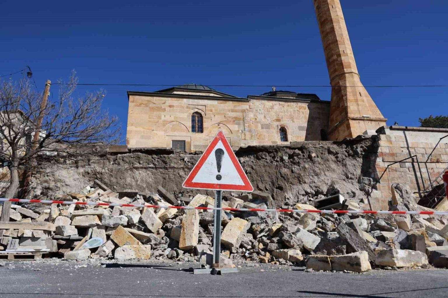 Tarihi caminin istinat duvarı çöktü, o anlar kameralara yansıdı