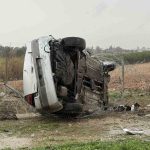 Mersin’in Tarsus ilçesinde yamur kazaya neden oldu, yoldan çıkan arac şarampole devrildi.