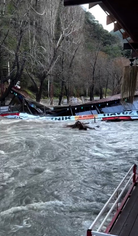 Alanya’da üç gündür aralıksız devam eden sağanak yağış hayatı felç etti. Meteoroloji 4. Bölge Müdürlüğü’nün sarı kodlu uyarısının ardından etkisini artıran yağışlar nedeniyle Dim Çayı ve Oba Çayı taştı. Su debisinin hızla yükselmesi sonucu dere yataklarında taşkınlar meydana gelirken, çok sayıda işletme ve ev zarar gördü. Çaydaki bir işletmenin yıkılma anı ile mahsur kalan bir köpeğin kurtarılma anı ise cep telefonu görüntülerine yansıdı.