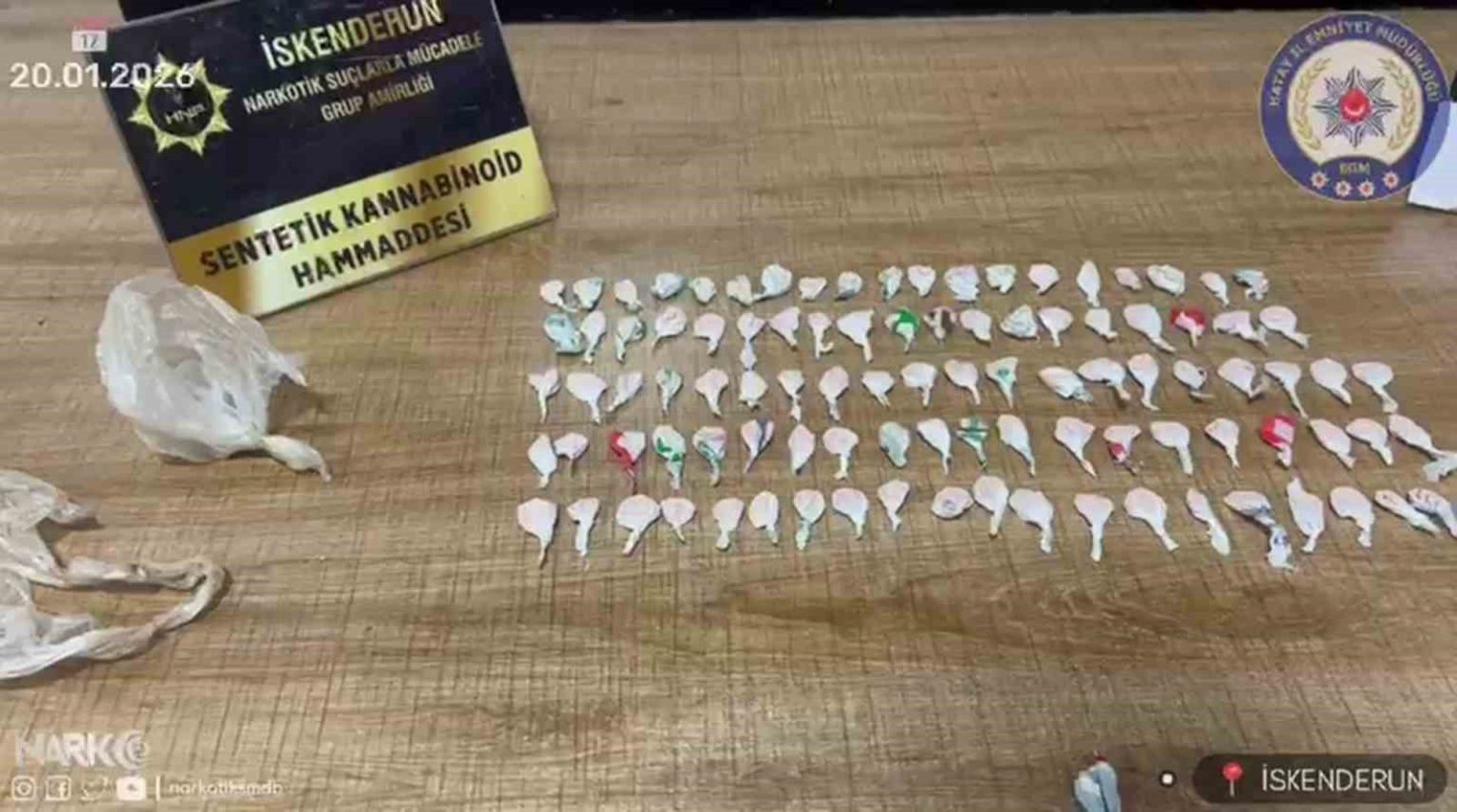 Hatay Emniyet Müdürlüğü görevlilerince uyuşturucu madde kullanımının ve ticaretinin önlenmesine yönelik yürütülen çalışmalar aralıksız sürüyor. Çalışmalara kapsamında 20 Ocak günü İskenderun ilçesinde fiziki takip sonrası durdurulan A.E.Z. ve E.K.’nın üstünde ve A.E.’nin Esentepe Mahallesi’nde bulunan ikamette arama yapıldı. Yapılan aramada; 0,30 gram sentetik kannabinoid ham maddesi, 98 parça halinde satışa hazır vaziyette sentetik kannabinoid ham maddeleri ve 0,80 gram sentetik kannabinoid maddesi ele geçirildi. Olayla ilgili olarak yakalanarak gözaltına alınan şahıslardan A.E.Z. ve E.K. isimli şahıslara, TCK 191 den işlem yapıldı ve serbest bırakıldı. Adli makamlara sevk edilen şahıslardan ise S.E. adli kontrol şartıyla serbest bırakılırken, A.E. ise tutuklanarak cezaevine teslim edildi. Öte yandan arama yapılan Esentepe Mahallesi’ndeki ikametin 10 metre uzaklığında taşın altındaki satışa hazır uyuşturucu madde polisin dikkatiyle bulundu.