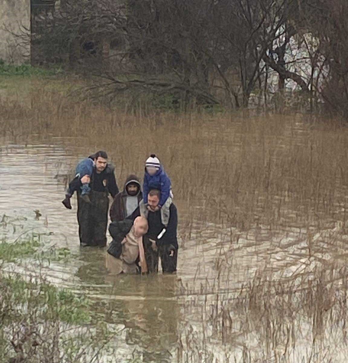 Taşkın sebebiyle mahsur kalan aile kurtarıldı