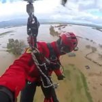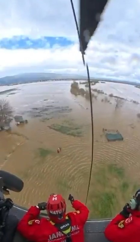 Aydın genelinde etkili olan sağanak yağış sebebiyle Büyük Menderes Nehri’nde yer yer taşkınlar meydana geldi. Koçarlı ilçesinden de geçen nehrin taşması sonucu ovadaki birçok arazi ve hayvan damları sular altında kaldı. Su seviyesinin yükselmesi ile birlikte bölgede tahliye çalışmaları gerçekleştirilirken, Kasaplar Mahallesi’nde hayvanlarını korumak amacıyla damda bekleyen Abdullah Öpöz, yaşanan taşkın üzerine suların ortasında mahsur kaldı. Kara bağlantısının kesildiği bölgede Öpöz’ün kurtarılması için çalışma başlatıldı. Olay yerine yönlendirilen Aydın Jandarma Filo Komutanlığı’na ait helikopterle bulunduğu noktadan alınan Öpöz, sağlık kontrolü için hastaneye sevk edildi. Vatandaşın sağlık durumunun iyi olduğu öğrenilirken, kurtarma operasyonuna ait jandarma kamerası görüntüleri ortaya çıktı. Helikopter kamerasına anbean yansıyan görüntülerde, Öpöz’ün mahsur kaldığı yerden kurtarılması ve güvenli bir şekilde helikoptere alınması yer aldı.
