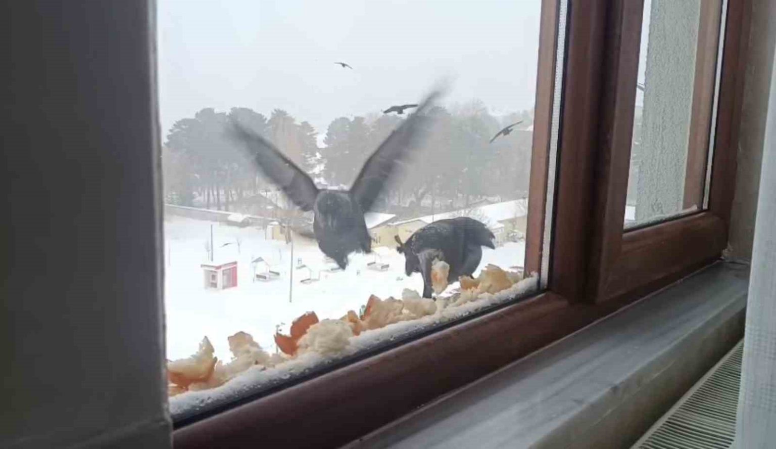 Öte yandan kuşların pencere önüne konulan ekmekleri kısa sürede tüketmesi kameraya yansıdı.