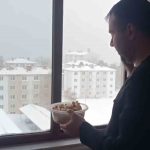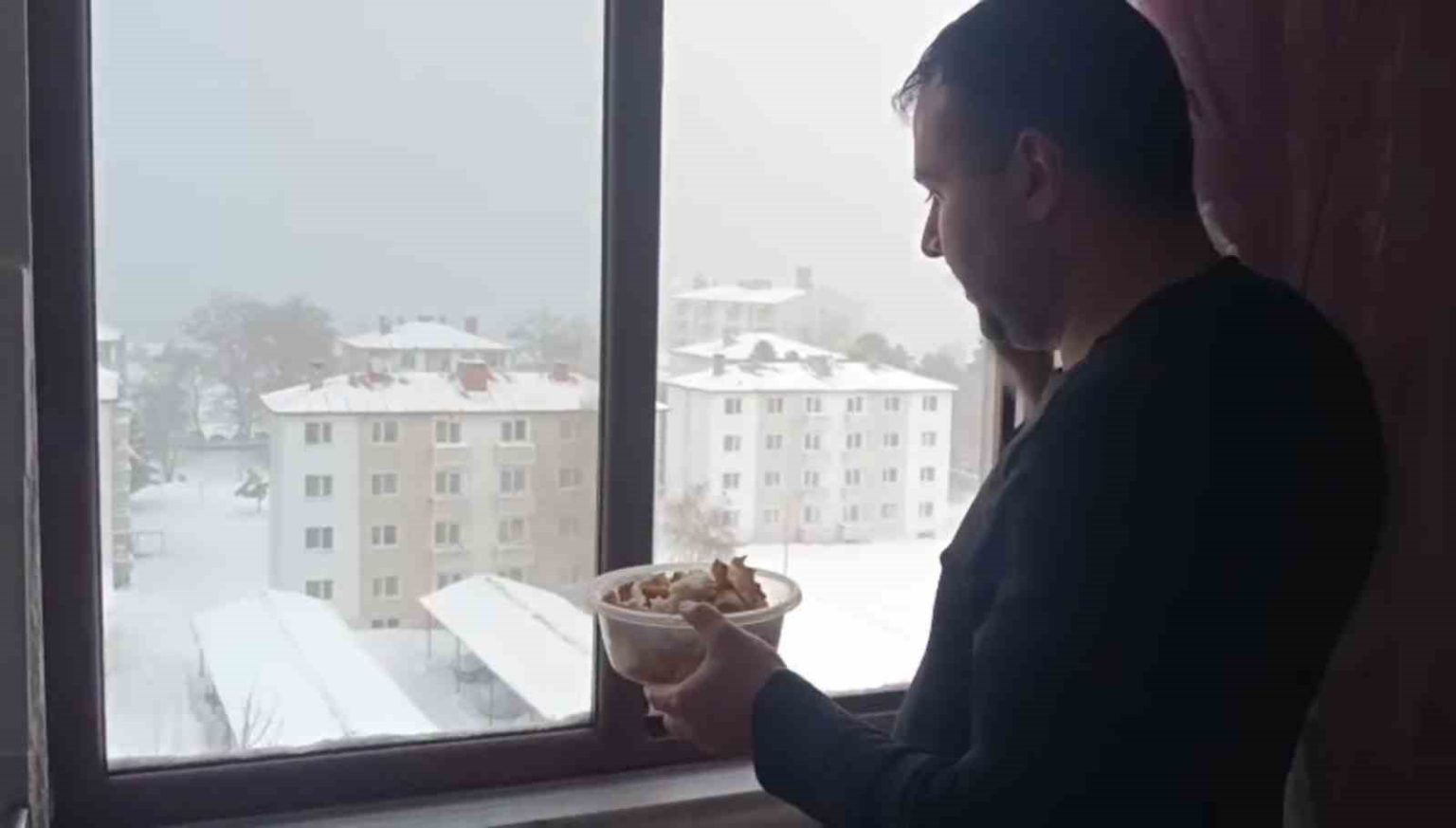 Bitlis’in Tatvan ilçesinde etkili olan olumsuz hava şartları nedeniyle pencerelerinin önüne kuşlar için ekmek bırakan baba ve kızı büyük takdir topladı.