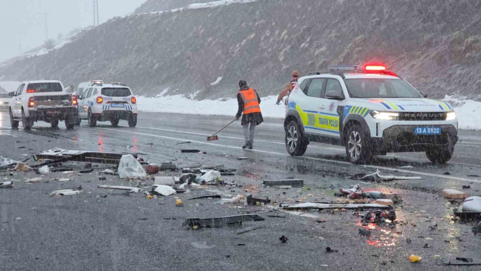 Jandarma ve polis ekipleri, olay yerinde üst düzey önlem alarak trafiğin akışını tek şeritten verdi. Karayolları ekipleri yola saçılan araçların parçalarını temizleyip kaza yapan otomobil kaldırıldıktan sonra trafik normale döndü. Kazayla ilgili geniş çaplı tahkikat başlatıldı.