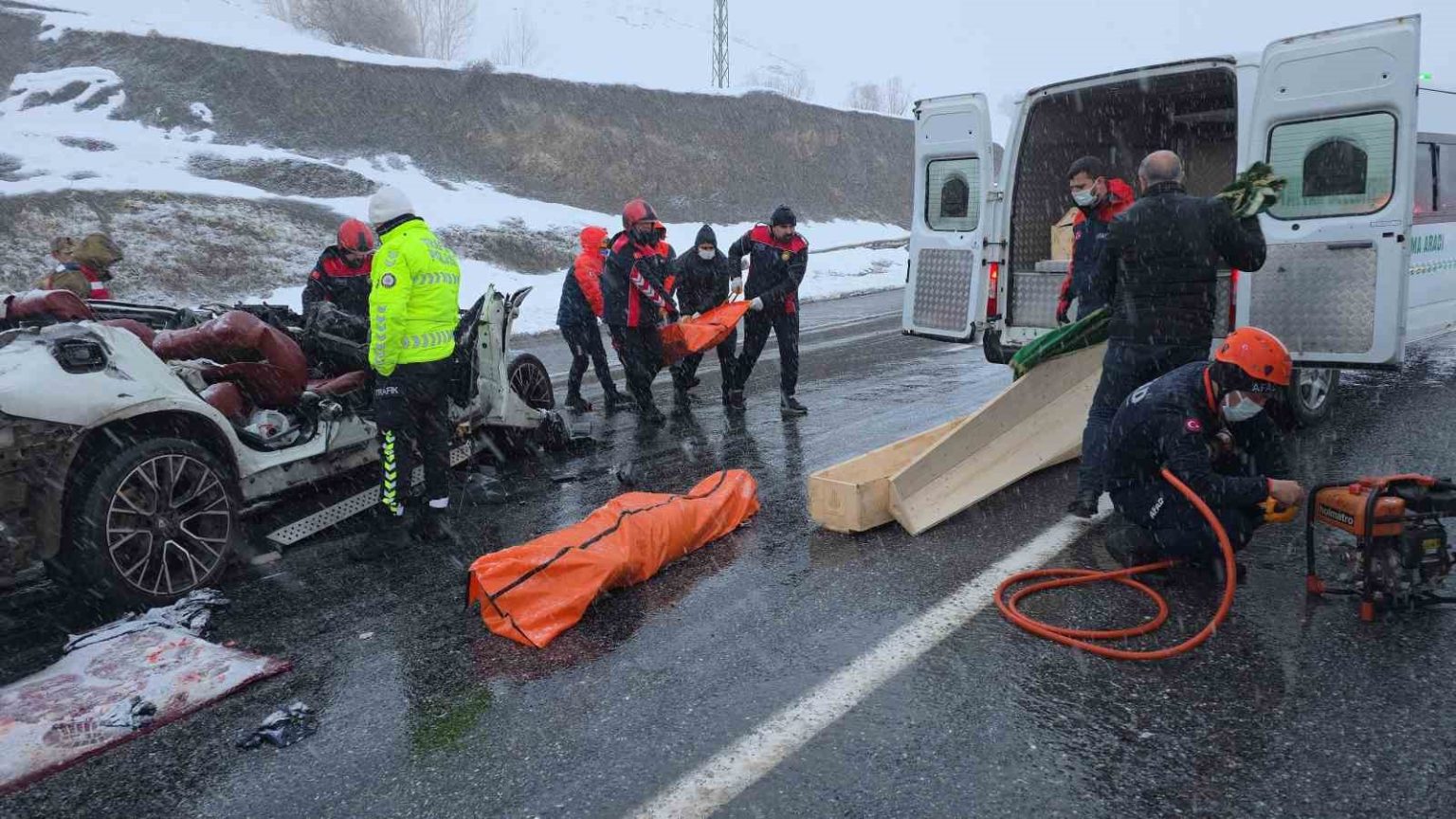 Hurda yığınına dönen otomobilde sıkışan çiftin cenazeleri, Bitlis İl Afet va Acil Durum (AFAD) Müdürlüğü ile itfaiye ekiplerinin uzun uğraşları sonucu çıkartıldı. Karı kocanın cenazeleri bölgeye sevk edilen cenaze aracı ile Tatvan Devlet Hastanesi morguna kaldırıldı.