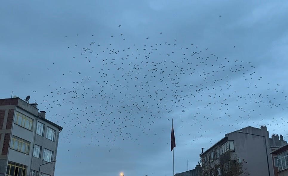 Tekirdağ’ın Hayrabolu ilçesinde sabah saatlerinde gökyüzünü kaplayan kalabalık karga sürüsü, vatandaşları şaşırttı.