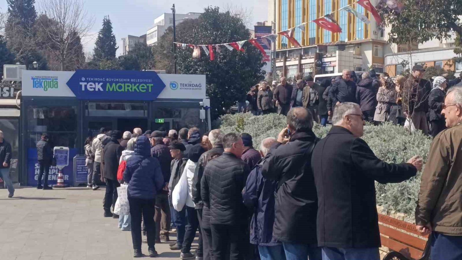 Tekirdağ Büyükşehir Belediyesi tarafından dar gelirli vatandaşların uygun fiyatlı et ve et ürünlerine erişimini sağlamak amacıyla hizmet veren TEK Market, yaklaşan bayram öncesi vatandaşların yoğun ilgisiyle karşılaştı. Süleymanpaşa ilçesi Ertuğrul Mahallesi’nde bulunan markette uygun fiyatlı et almak isteyen vatandaşlar sabahın erken saatlerinden itibaren metrelerce kuyruk oluşturdu.
