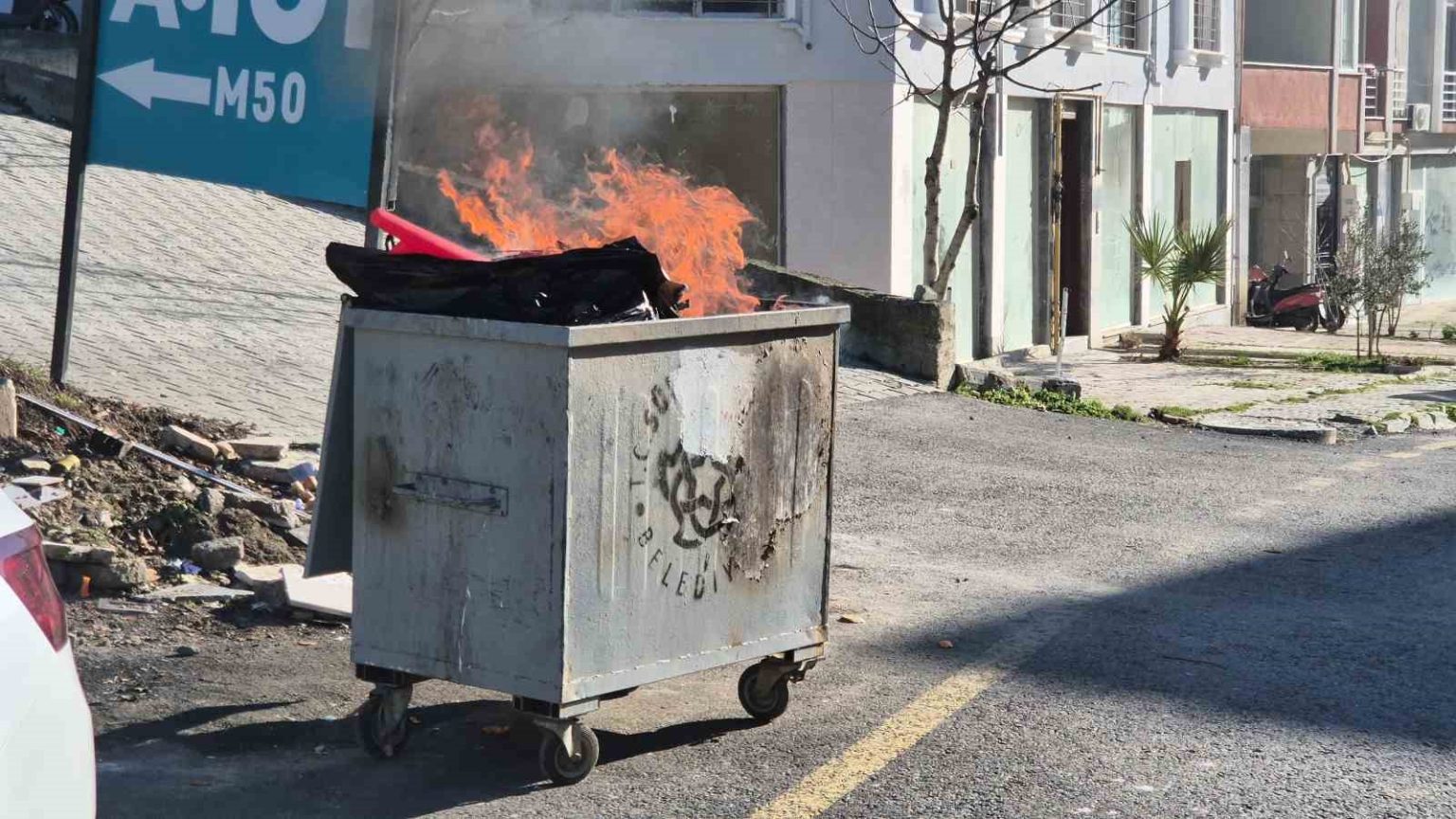 Edinilen bilgiye göre, cadde üzerinde bulunan çöp konteynerinden dumanların yükseldiğini gören vatandaşlar duruma tepki gösterdi. Bazı vatandaşlar, “Kendiliğinden mi yanıyor, yoksa biri mi yakıyor anlamadım, geçen gün de yanıyordu” diyerek duruma tepki gösterirken, alevlerin çevreye sıçramaması için konteynerin kapağını kapatmaya çalıştı.