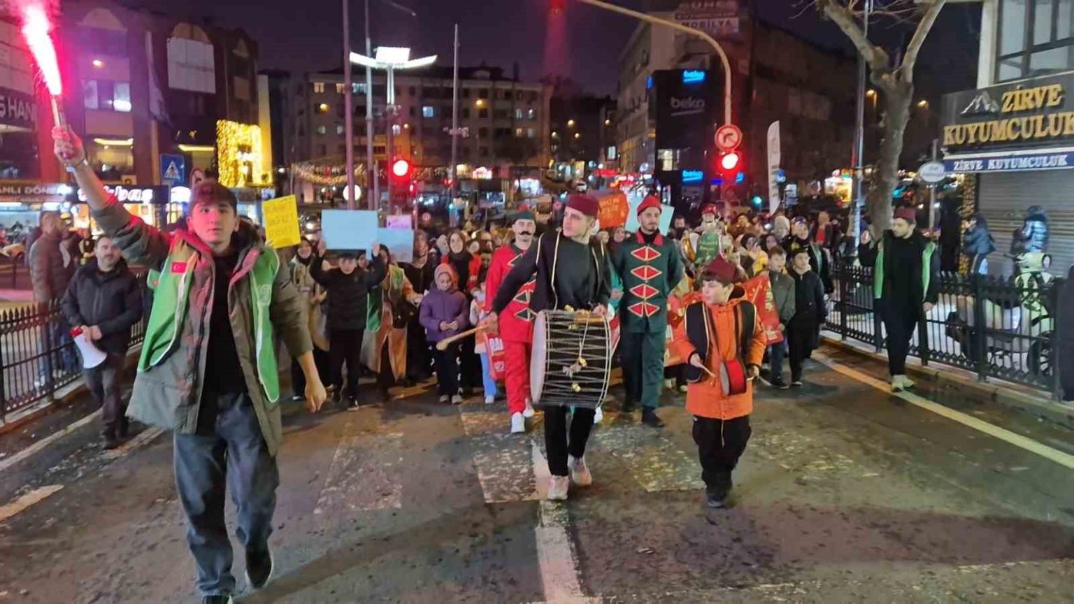 Ailelerin de yoğun katılım gösterdiği yürüyüşte çocuklar, taşıdıkları fenerlerle kentin sokaklarını adeta aydınlattı. Dualar eşliğinde ilerleyen kortej, Tekirdağ Valilik Meydanı’na ulaştığında meydanda anlamlı bir atmosfer oluştu.