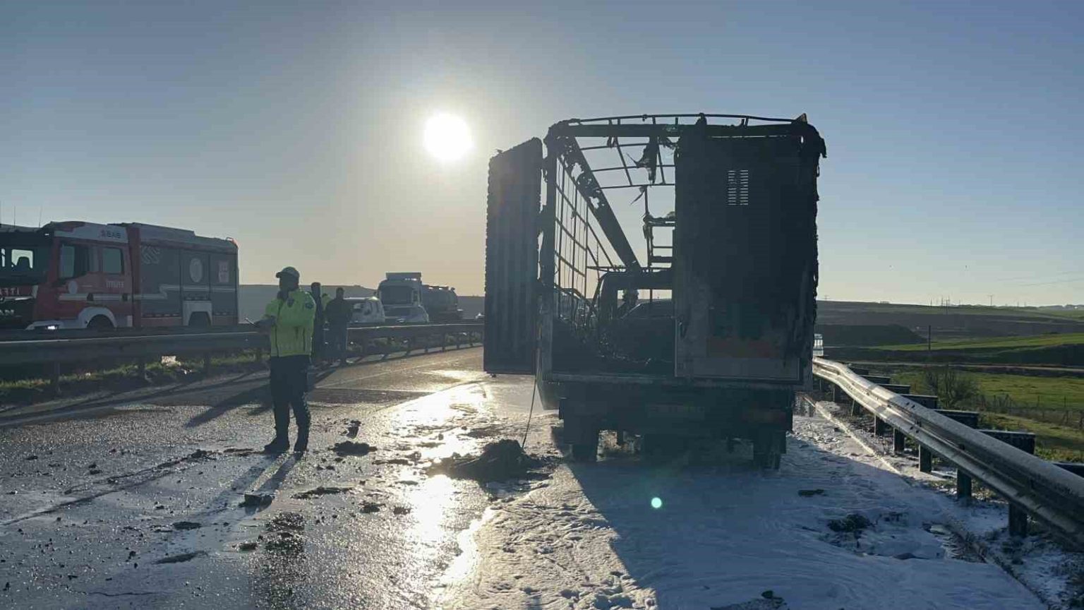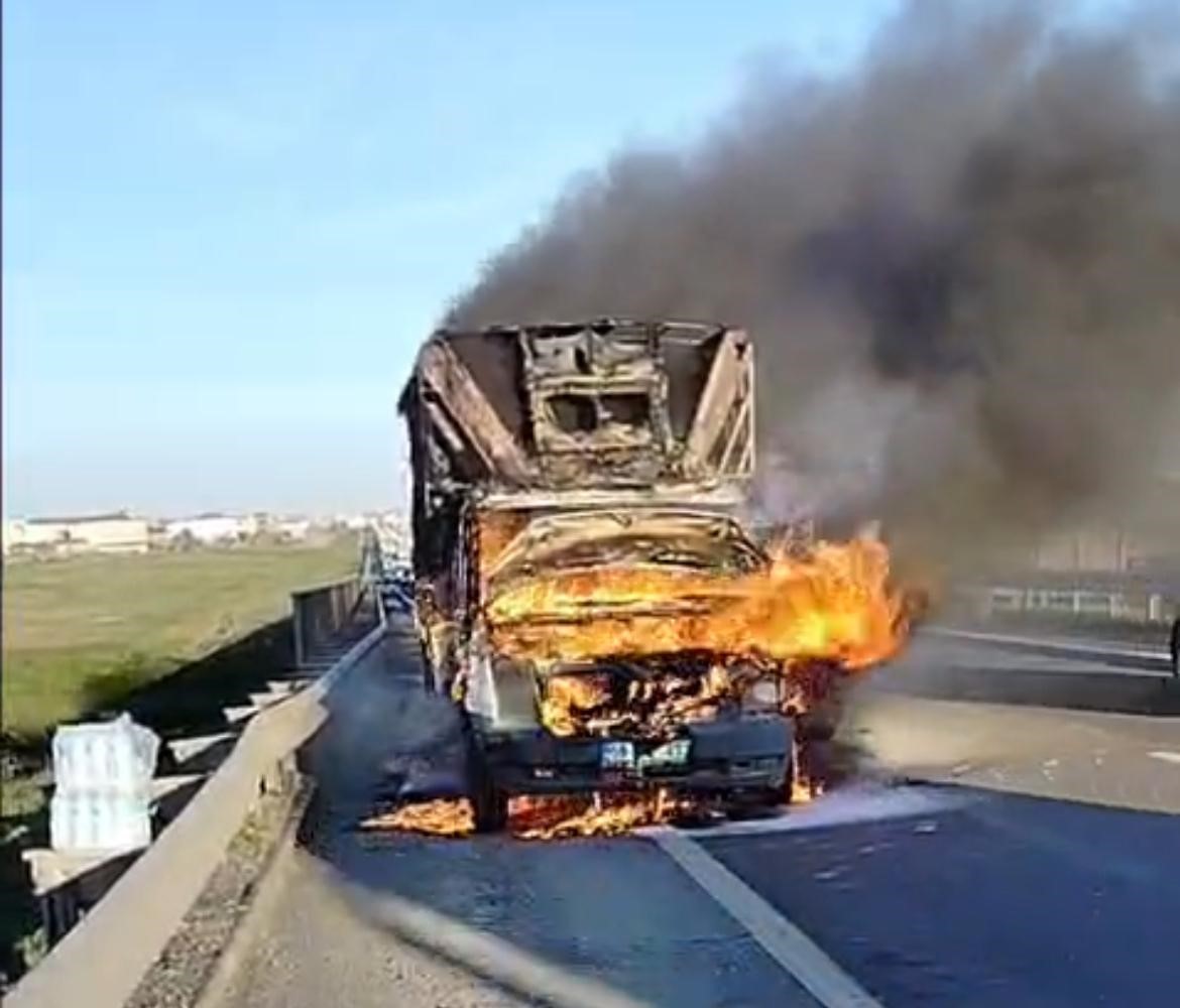 Olay, Çorlu-Ergene Çevre Yolu üzeri Deri OSB mevkiinde meydana geldi. Çorlu yönüne seyreden Volkan D. idaresindeki 59 FA 433 plakalı kamyonetin ön kısmı bir anda alev aldı. Durumu fark eden sürücü aracı yol kenarına çekip 112 Acil’i aradı. İhbar üzerine olay yerine gelen itfaiye ekiplerince söndürülen yangından geriye demir yığını kaldı. Yangında kamyonet kasasındaki ağaç ürünleri de zarar görürken sürücü olayı yara almadan atlattı.