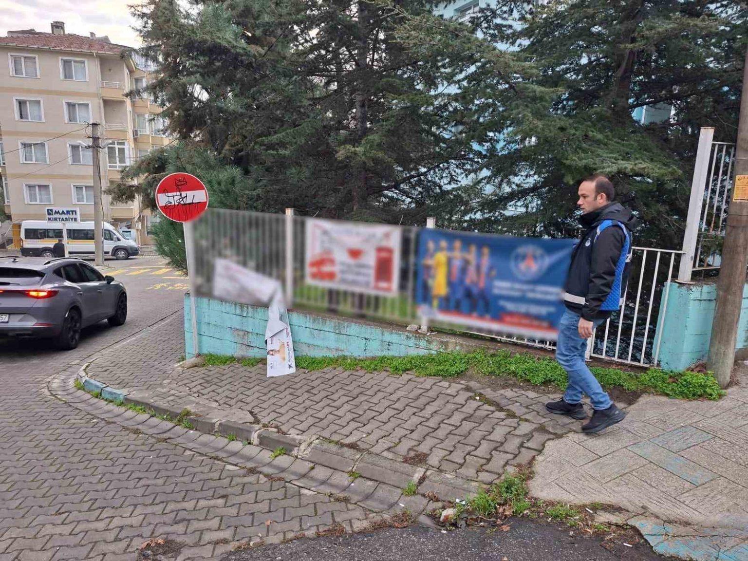 Tekirdağ’da zabıta ekiplerinden izinsiz afiş reklamlara denetim