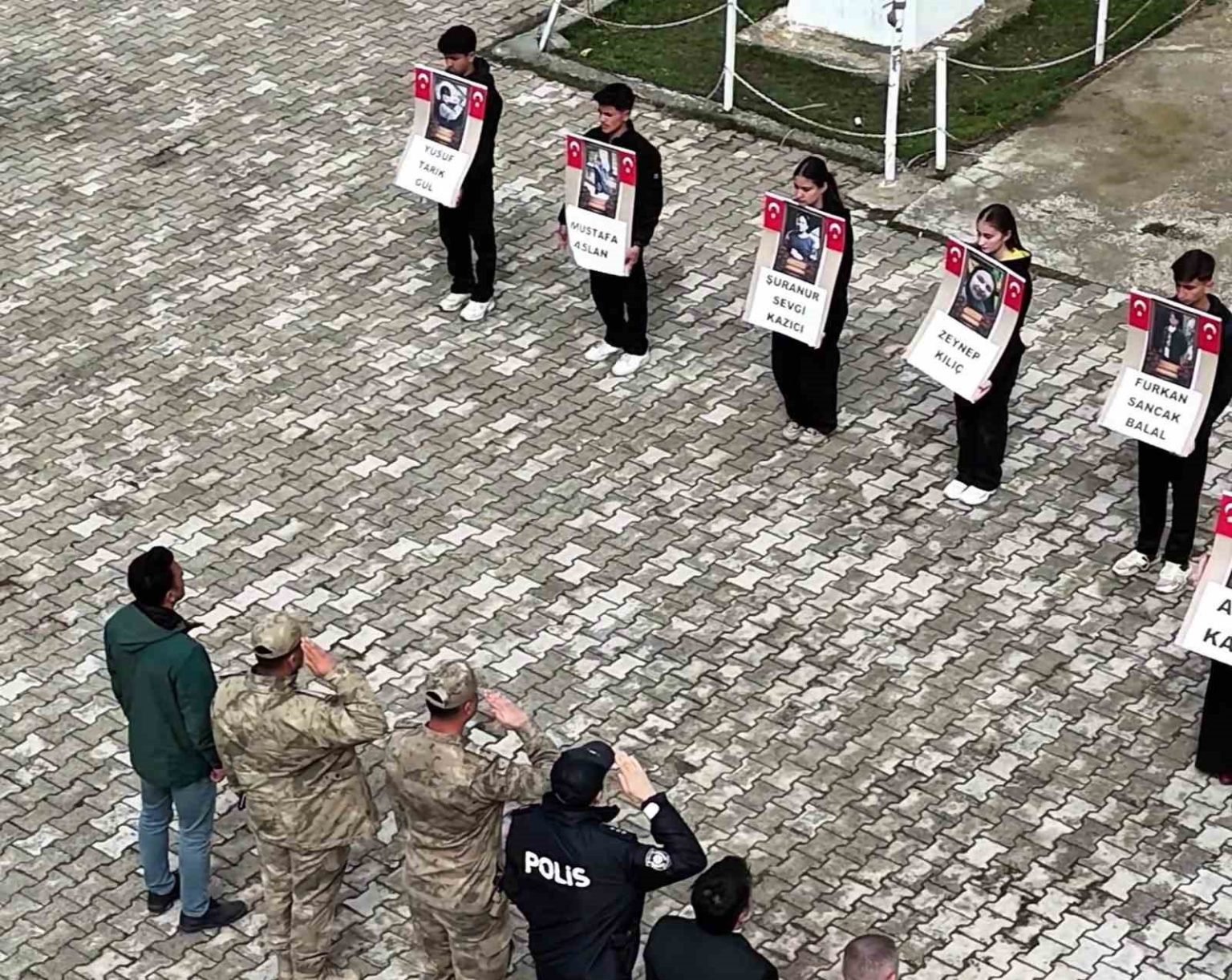 Tekman Anadolu Lisesi Okul Müdürü Selami Korkmaz tarafından organize edilen programda, Kahramanmaraş’ta yaşanan silahlı okul saldırısının ardından vefat eden 8 öğrenci ile 1 öğretmen anıldı. Elim faciada hayatını kaybedenlerin fotoğrafları ile okulun bahçesinde hazır bulunan öğrenciler hep birlikte isimlerini okudular ve “Burada” dediler.