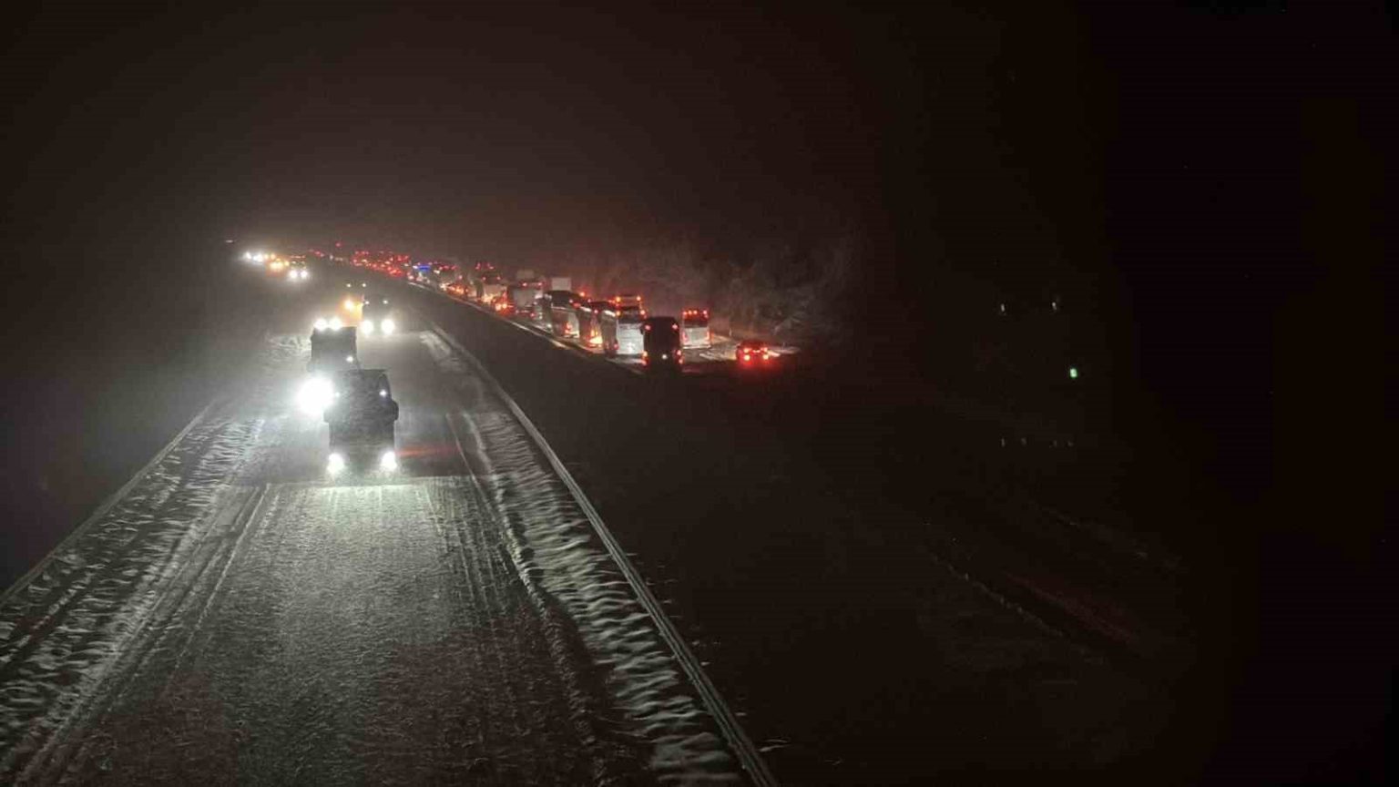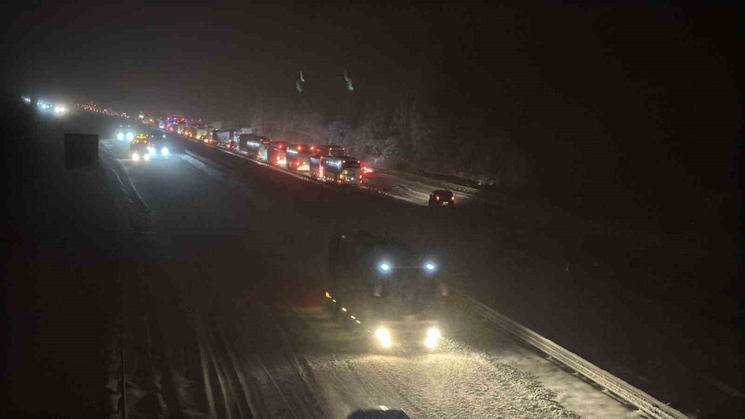 TEM Otoyolu’nun ve D-100 karayolunun Bolu geçişinde yoğun kar yağışı devam ediyor. Kış lastiği veya zincir takmadan yola çıkan araçlar ulaşımın aksamasına neden oldu. TEM otoyolunun Ankara istikametinde Çaydurt bölgesinde 3 şeridi, 3 tırın tedbirsizliği sonucu kapandı. Tırların yolu kapatmasıyla birlikte Ankara istikametinde ulaşım tamamen kesildi ve bölgede kilometrelerce araç kuyruğu oluştu.