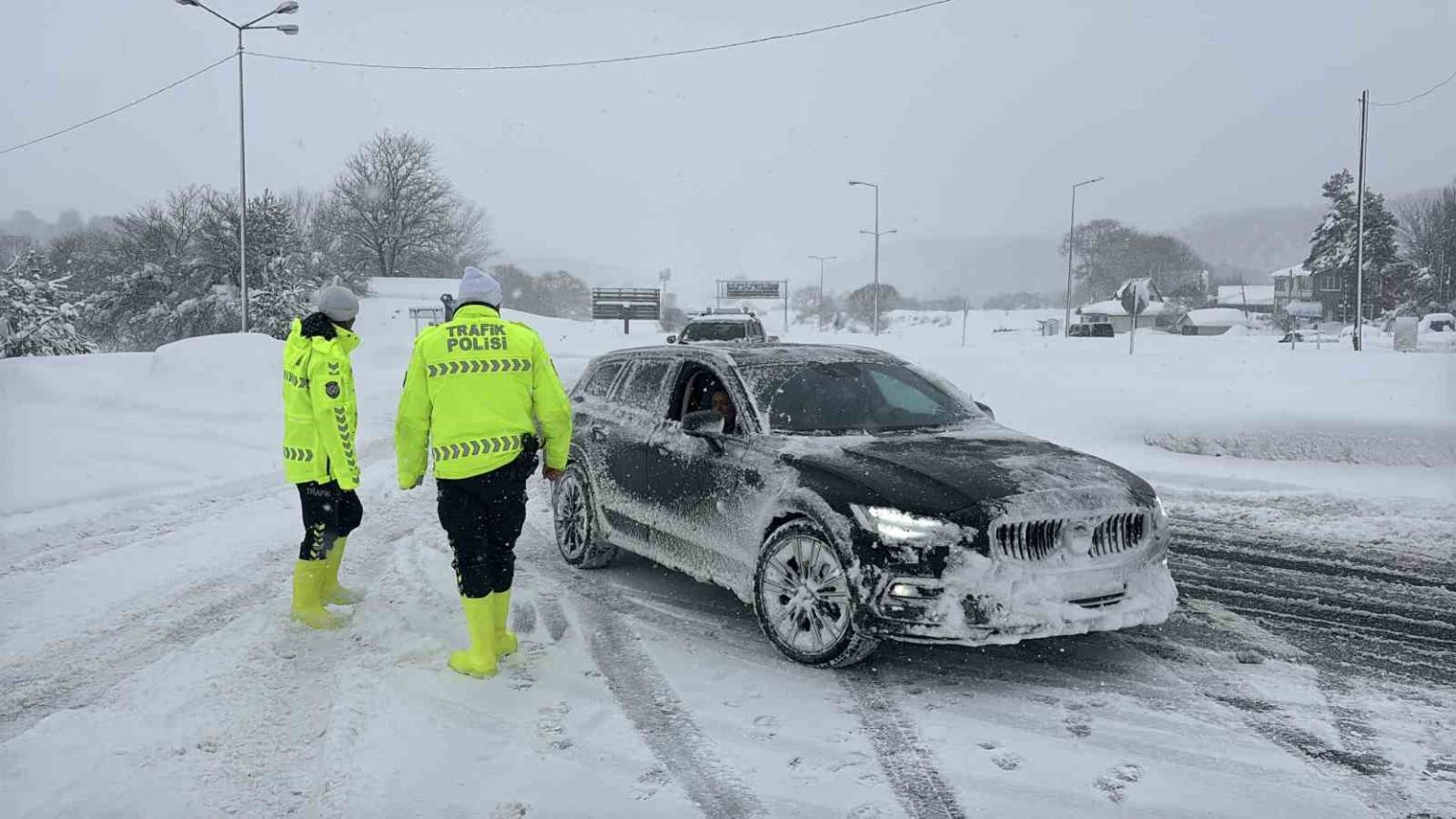 Bolu’da etkili olan yoğun kar yağışı ve olumsuz hava şartları nedeniyle TEM Otoyolu ve D-100 kara yolunun Bolu geçişi ağır tonajlı araçlar ile kış lastiği bulunmayan araçların geçişine kapatıldı.