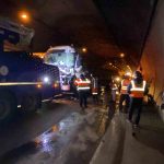 TEM Otoyolu’nun Kocaeli geçişindeki tünelde 2 tır ve 2 otomobilin karıştığı kazada sıkışan tır sürücüsü yaralandı.