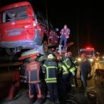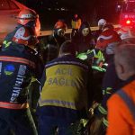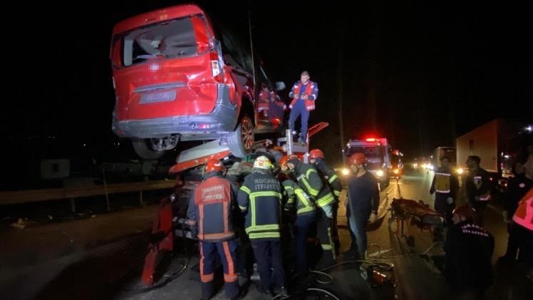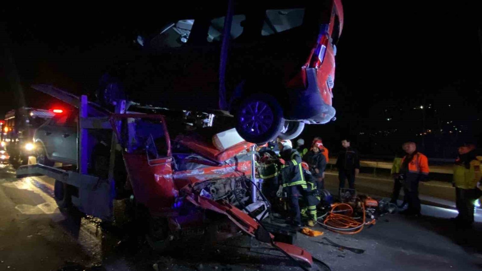 TEM Otoyolu’nun Kocaeli geçişinde tıra arkadan çarpan kamyonetin sürücüsü, hem çarptığı tır hem de kendi taşıdığı aracın kabine kayması sonucu iki taraftan mahsur kaldı. İtfaiye ekiplerinin, üstten sarkan aracın düşmemesi için vinçle sabitleyerek gerçekleştirdiği titiz çalışmada, yaralı sürücü uzun uğraşlar sonucu sıkıştığı yerden kurtarıldı.