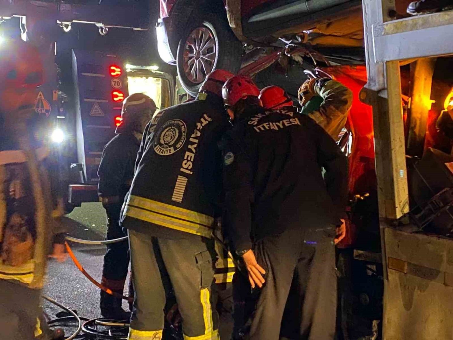 Çarpmanın şiddetiyle kamyonetin kasasında bulunan iki araçtan biri yerinden oynayarak sürücü kabinine doğru sarktı. Kamyonet sürücüsü Y.S., aracın ön kısmının tırın altına girmesi ve taşıdığı aracın arkadan kabine baskı yapması sonucu iki taraftan mahsur kaldı.