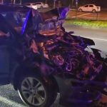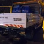 Temizlik aracına çarpan otomobil hurdaya döndü