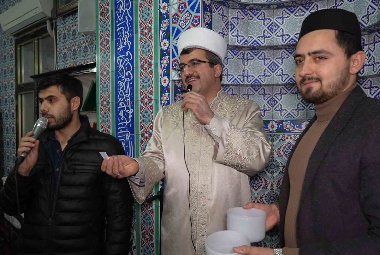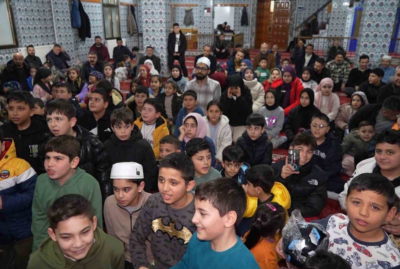 Teravih namazına camiye gelen çocuklar ilahi söyledi